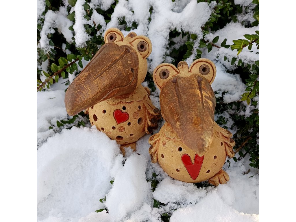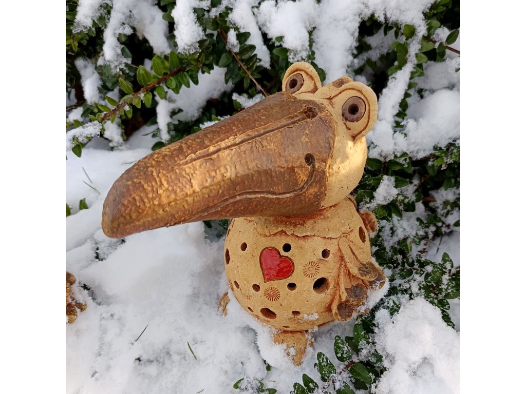 Ptakošek menší je vyroben z hrubé šamotové hlíny, dekorován patinou a detaily jsou glazovány matnou zemitou glazurou.